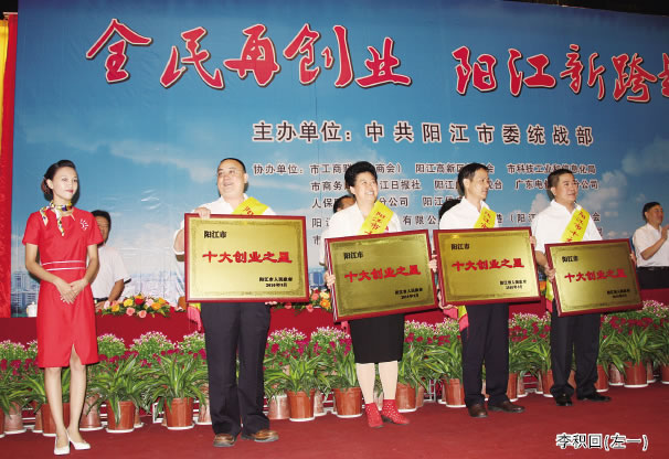 經(jīng)過激烈的評選及角逐,“十大創(chuàng)業(yè)之星”獲獎名單在動員大會上公布并表彰。我集團(tuán)公司總經(jīng)理李積回和本市9名非公有制經(jīng)濟(jì)人士當(dāng)選,榮獲“陽江市十大創(chuàng)業(yè)之星”殊榮。
