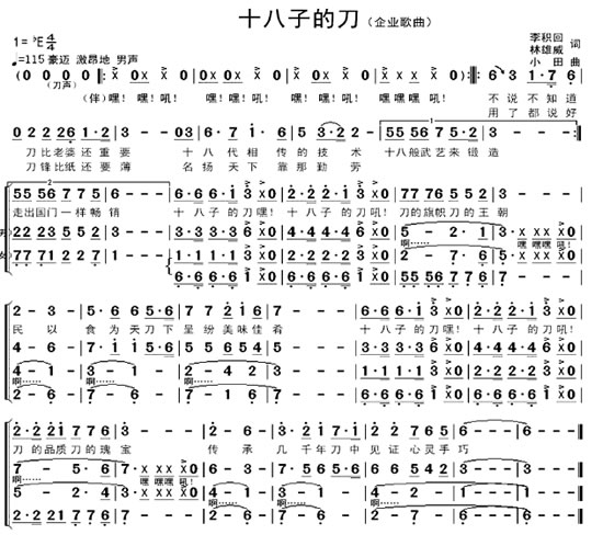 十八子主題歌:《十八子的刀》歌譜