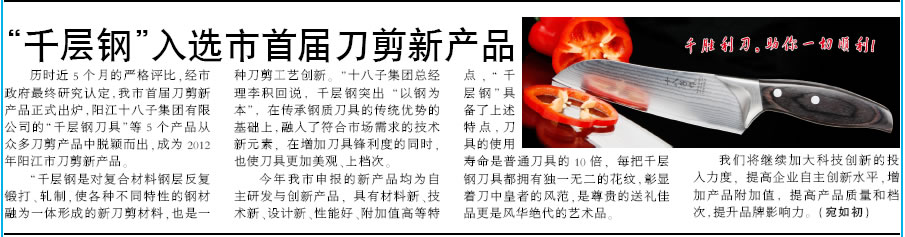 千層鋼入選市首屆刀剪新產品