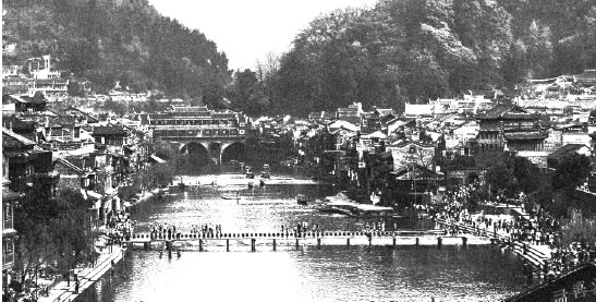 乘坐深圳-懷化的火車,在吉首站下車轉乘快車到鳳凰,已是次日下午。住在臨江吊腳樓的家庭旅館,推開窗戶,但見沱江之水清美婉約,一如俏生生的苗妹子赤足迎風。晚餐時在老街飯店,來幾味小吃,分別有:腌蘿卜、姜糖、炒粉;特色菜是血粑鴨、酸辣魚,臘肉炒蕨菜、炒苞谷、罐罐菌等。也許是環境新鮮,頓覺美味無窮,食欲未盡,一洗舟車勞頓之勞累。