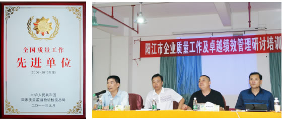 陽江市質(zhì)監(jiān)局以此為契機,9月29日,在陽江十八子舉辦“陽江市企業(yè)質(zhì)量工作及卓越績效管理研討培訓班(第一期)”,邀請李積回總經(jīng)理作經(jīng)驗介紹,組織全市30家名優(yōu)企業(yè)參加學習。通過本次培訓,推廣先進質(zhì)量管理方法,引導企業(yè)實施卓越績效質(zhì)量管理模式,幫助全市企業(yè)提升質(zhì)量管理水平,促進產(chǎn)品質(zhì)量穩(wěn)定提高,降低成本,增強核心競爭力。