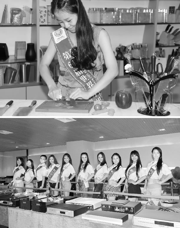 2011年8月1日,陽江十八子迎來了第61屆世界小姐,30多位佳麗在主辦方的安排下攜記者團蒞臨我集團。在工作人員的解說下,她們領略了中國刀具的五次技術革命,了解了十八子的企業文化及科技創新情況,對十八子刀具感到非常好奇,提出要親身體驗一下十八子刀具的要求,有的佳麗已按捺不住躍躍欲試的心情,紛紛在操作臺上大顯身手,比拼“刀功”。