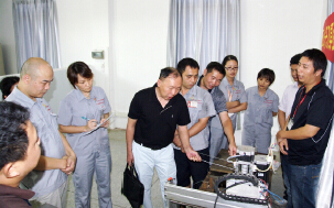 上午10時左右,刀具刃口強度檢測儀研發小組的成員集中在檢測中心,研發小組實施負責人范志強首先向與會人員詳細地介紹設備的操作原理并同步演示設備的作業步驟,檢測中心柯秀香匯報了該設備在試制過程所收集的信息與數據。劉剛仔細觀看并聽取各方面的匯報后指出,刀具刃口強度檢測儀的研發將是刀剪行業在刀具刃口檢測方法上一項國際性的突破,其能為刀具重要的安全使用性能提供科學的檢測手段。從首試檢測運行的各組數據分析,該設備在確定力值的輸入方法、刀具砍切介質的選定等方面仍存在較大改進空間,其希望研發小組成員克服困難,繼續縱向、橫向多個方向深層次思考,提高該設備運行的可操作性。