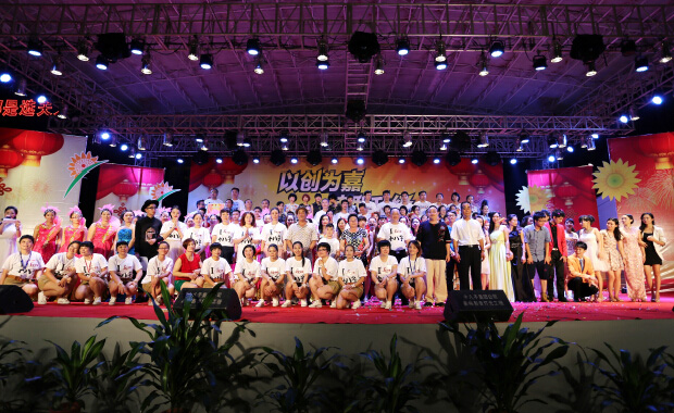 2014年7月12日晚,集團(tuán)公司在十八子飯店大舞臺隆重地舉辦了建廠32年“轉(zhuǎn)型升級 以創(chuàng)為嘉”文藝晚會。當(dāng)晚,工作人員身著節(jié)日的盛裝,春風(fēng)滿面地忙碌著;悠揚(yáng)動聽的音樂在周圍飄蕩著;鮮艷的彩旗迎風(fēng)招展。員工們都很有序地進(jìn)入會場,19點(diǎn)30左右,晚會在節(jié)奏緊張輕快的音樂聲鐘拉開前奏,集團(tuán)總經(jīng)理李積回、副總經(jīng)理李有維、李松德分別上臺致辭;刀剪公司經(jīng)營部經(jīng)理鄭艷冰代表全體員工發(fā)言。當(dāng)熟悉的“祝你生日快樂”音樂旋律響起,員工們也跟著旋律快樂地哼起來,董事長李良輝挽著副董事長盧榮娟緩緩走到舞臺、集團(tuán)公司高層們簇?fù)碇鴩搅怂麄兩磉叄黄瘘c(diǎn)燃生日蠟燭、唱生日歌、切蛋糕,開啟香檳,同時(shí)為來自集團(tuán)屬下各公司的崗位標(biāo)兵、管理標(biāo)兵、優(yōu)秀廠長、合理化建議獲獎?wù)摺徫患寄塬@獎?wù)吖?20人頒發(fā)獎勵。